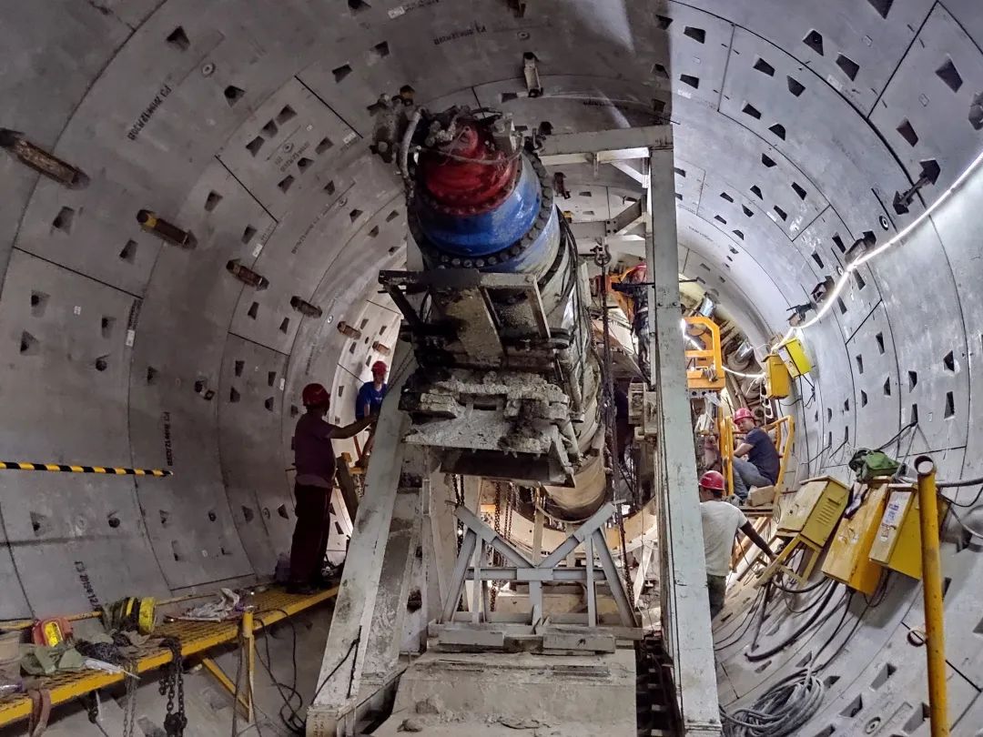 夏日高温阻挡不了厦工中铁人的换模热情,厦工中铁专业团队在中铁761号(厦工中铁061号)的经验基础上攻艰克难,历时14个昼夜在洞内不间断进行模式转换:在作业直径6.2米的有限空间内,将重30吨、长13米的螺旋输送机洞内拆除,重220吨、长约90米的后配套洞内整体后移20米,在有限空间不足4平方的土仓内安装总重2吨的溜渣槽。厦工中铁专业团队通过精细化管理和全方面准备,将中铁762号(厦工中铁062号)换模工作推至终点,换模耗时再次刷新记录。