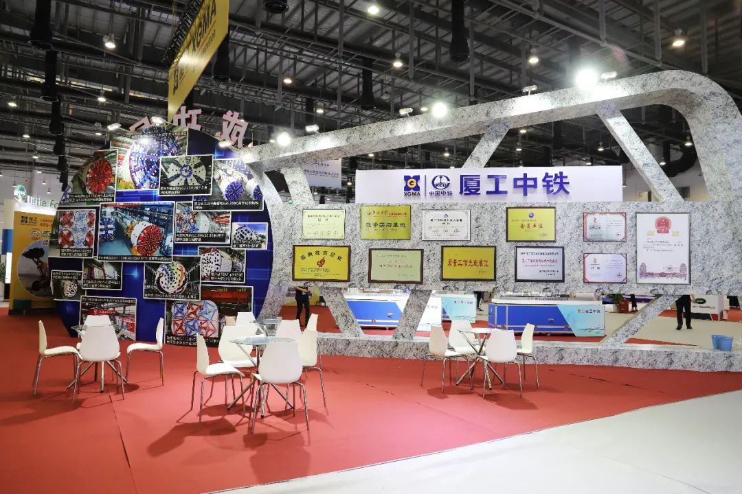 在B5展区,厦工中铁展厅外观以大理石色和蓝色为主,展厅面积达200平方米,运用地铁和盾构机刀盘造型,整体布局威猛、阳刚、大气,象征着厦工中铁不断向前、永续发展的美好前景。公司展台在展馆中一直是关注的焦点,前往参观的人员络绎不绝,厦工中铁的工作人员以专业、热情、积极的态度认真解答来访的客人的提问与咨询,现场气氛格外热烈。