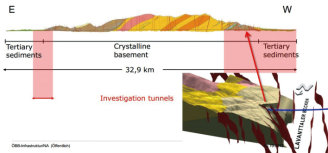 奥地利Koralm项目 为铁路隧道,隧道穿越Koralpe山脉,两条隧道总长为35.2公里,作为连接Graz和Klagenfurt两地130公里长铁路的一部分。该工程使用直径为9.93米的双护盾硬岩TBM,驱动方式为电驱,功率为4,800 KW,最大掘进驱动30,000KNm,并于2012年底开始掘进。隧道主要穿越的地层为:第三纪沉积层,结晶基底。