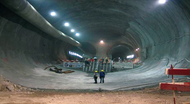 西班牙Guadarrama项目 瓜达拉马隧道(Guadarrama Tunnel)距离西班牙马德里50公里处,横穿瓜达拉马山脉。是西班牙新高速铁路网规划的高速铁路线之一。隧道长28.38公里,设计为两条平行的单线隧道,内径8.5米,两隧道的中心距离为30米。该双护盾硬岩TBM,直径为9.46米,隧道最大埋深1000米,主要地层岩性为花岗岩,抗压强度为250MPa。