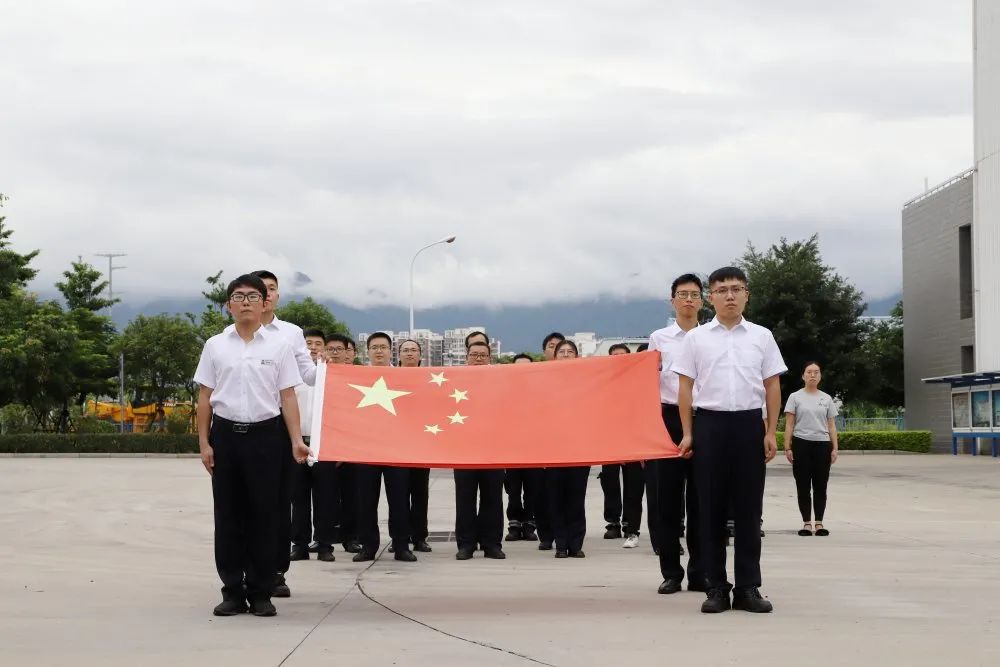 仪式上,大家行注目礼,怀着崇高的敬意,向祖国致以深深的祝福,并重温新中国光辉历程,回顾公司成立以来的发展成绩。