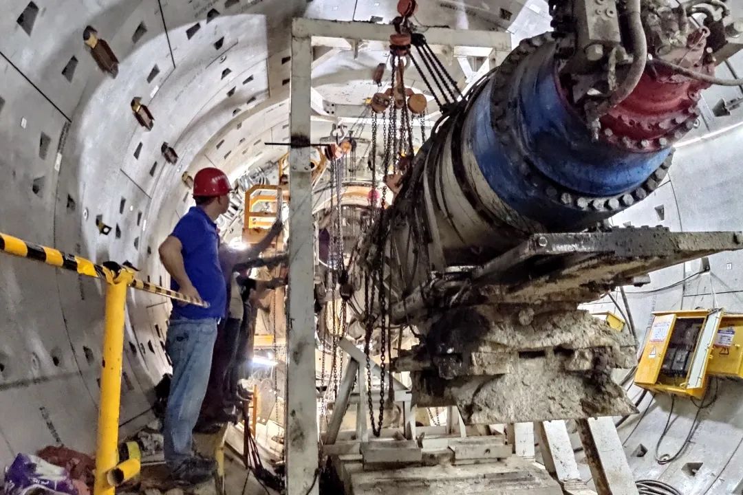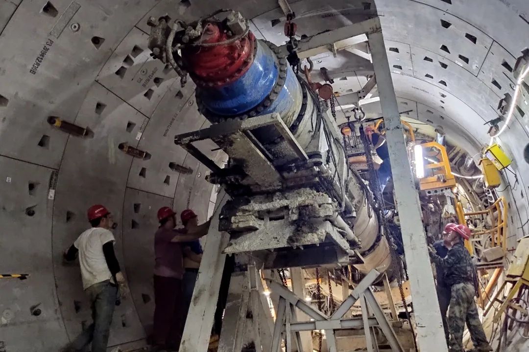 期间,管理人员、施工人员在现场进行交接,并做好详细的技术交底和安全交底,确保交接时实现“无缝”对接,安全高效推进施工进度。通过5天两班的昼夜奋战,厦工中铁专业团队在直径6.2米的有限空间内,克服了空间狭小和洞内条件恶劣等一系列难题,完成了重达30吨、长13米的螺旋输送机的拆除与运输工作。