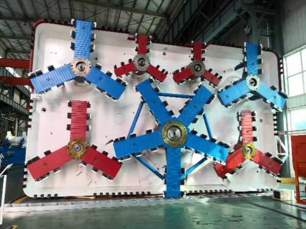 矩形顶管机的开挖面为矩形,其刀盘结构对称,刀盘受力均匀,对土体扰动小。矩形顶管机工作时,顶管机顶在管片环上配合刀盘旋转铣削推动矩形顶管机往前掘进。