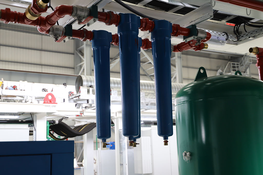 盾构机空压机出来的压缩空气经过A级和B级过滤器过滤后用于盾构上工业用气,经过A级、B级和AC级过滤器过滤后的压缩空气和外来空气用于人舱人员的呼吸用气。